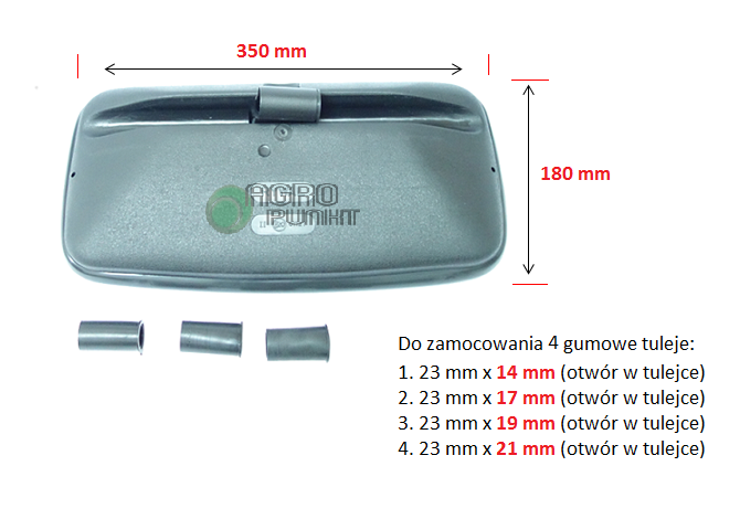 Lusterko uniwersalne zwykłe 35x18 cm, Ursus, Zetor, Case, Massey Ferguson, Koparki, Inne