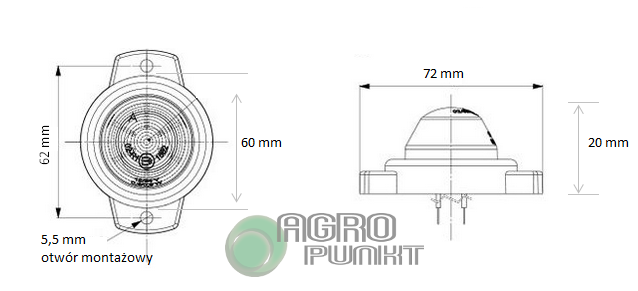 Rozstaw otworów montażowych: 62mm
